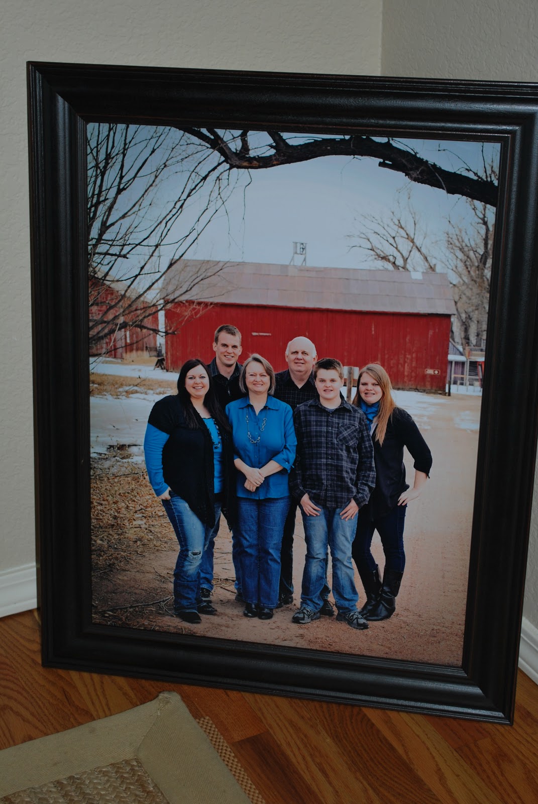 And, I finally got a large sized family photo. This is 18 x 24. My photographer came over yesterday to bring it by. The 8 x 10 picture above has better smiles, but I just loved this red barn background, and the large branch overhead. The photographer and I had talked about how this would make a great background and it did. Our family doesn't take fantastic photos, as a rule, and I've made peace with that. However, I wanted to remember this time when it was cold and we were getting ready to send our boy to Brazil. Its the last full day we were all together, so its a precious memory for me, and I absolutely love it and actually I think this is a pretty good picture of us all. I think this weekend would be a good time to get it hung up in the dining room, don't you?