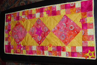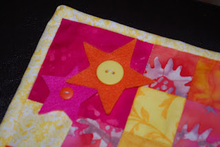 I finally finished the challenge quilt and got to share it Thur. night. So many ladies were so sweet and complementary. I added the felt stars and buttons to cover up a couple of mistakes, and then just kept adding them because I liked the whimsical look. Its a wall hanging. I learned a lot. It was fun to work smaller than a whole quilt and more doable in my life.