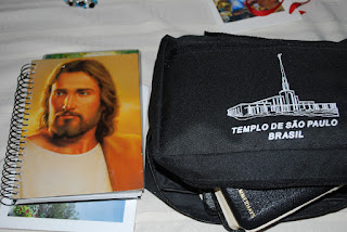 He was blessed to go to the temple in Sao Paulo several times and now a picture of it hangs in his bedroom. I'll have to take a picture of that soon. He bought this scripture cover case as a reminder of his great experiences there.