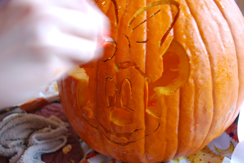 MyGirl moved more carefully. She found a pattern of Minnie Mouse she liked, and had to keep reminding herself that scooping out all the guts was worth it.
