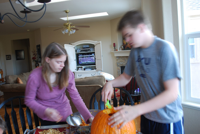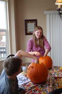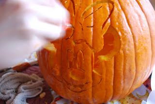 A rare picture of MyGirl happily working on her pumpkin.