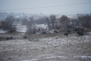 Saturday was one of those days when it starts out cold and turns into a lovely day. The cows came down close for breakfast and it was quite overcast.