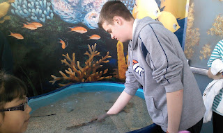 We all got to pet a small tiger shark. Even I did it. . . slightly rough and rubbery. Fortunately, the guy laid still. . . pretty sure I would have freaked if he'd turned and opened his mouth.