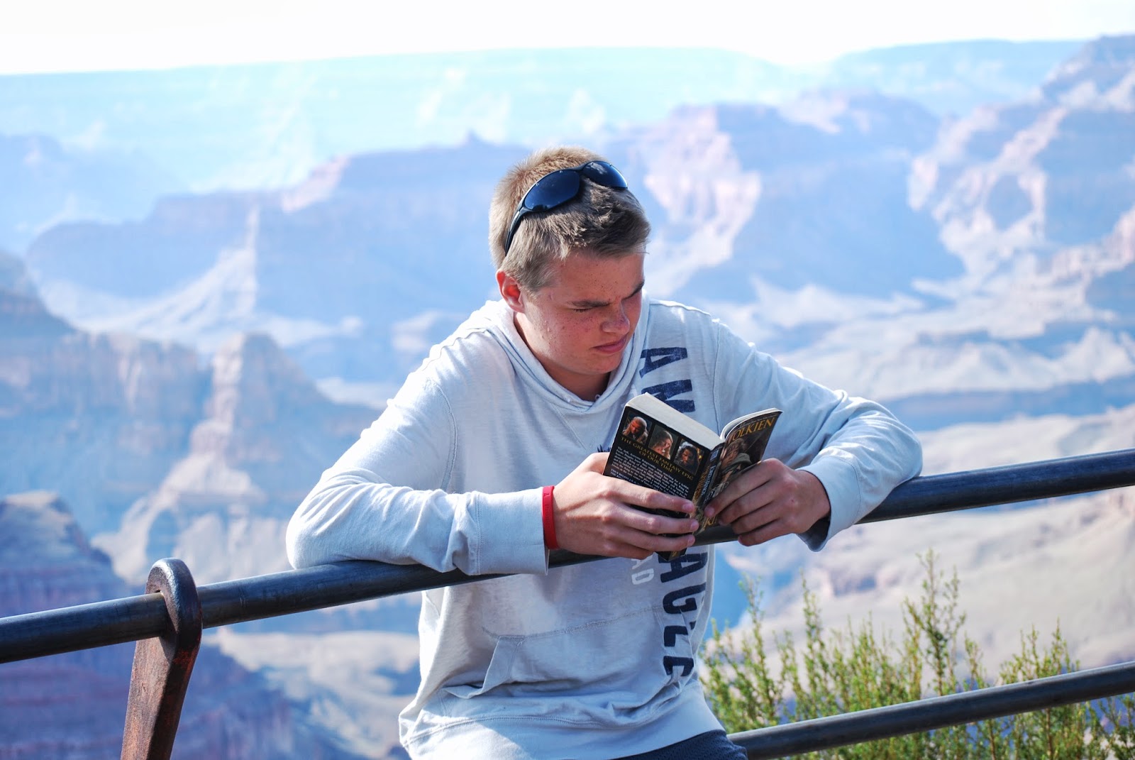 My boys read a lot of books on this trip, mostly in the car, but even at the Grand Canyon.