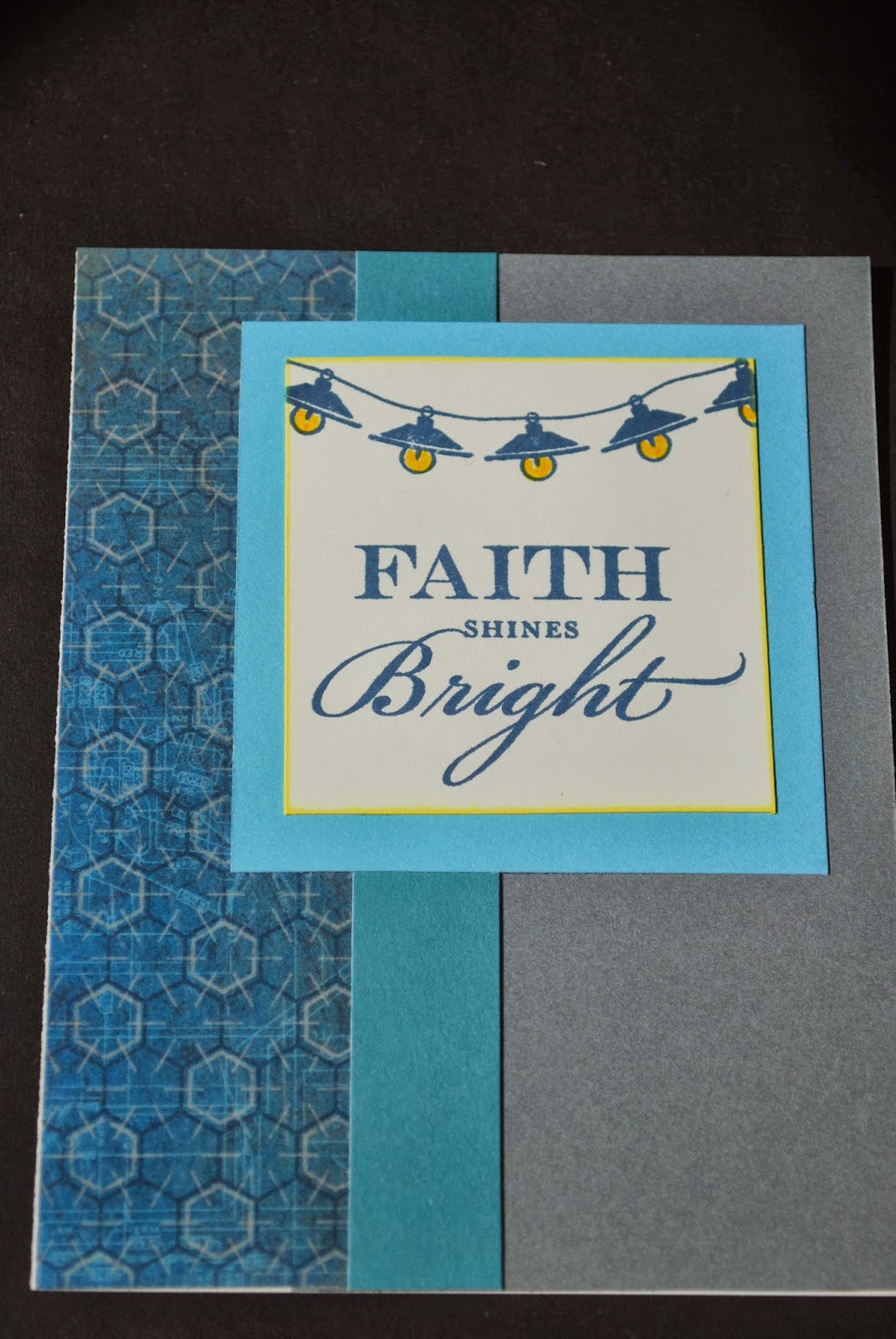 These next three cards are all the same pattern, but using different papers and cardstocks, that incidentally are all scraps or from samplers that I had. I inked everything in Outdoor Denim, thus saving more time from having to change inks and wash the stamps.The blue and gray ones I'm sending to boys and the purple and teal ones are going to girls. I made nine cards last Sunday night, three of each. Mass production makes the card-making go faster.