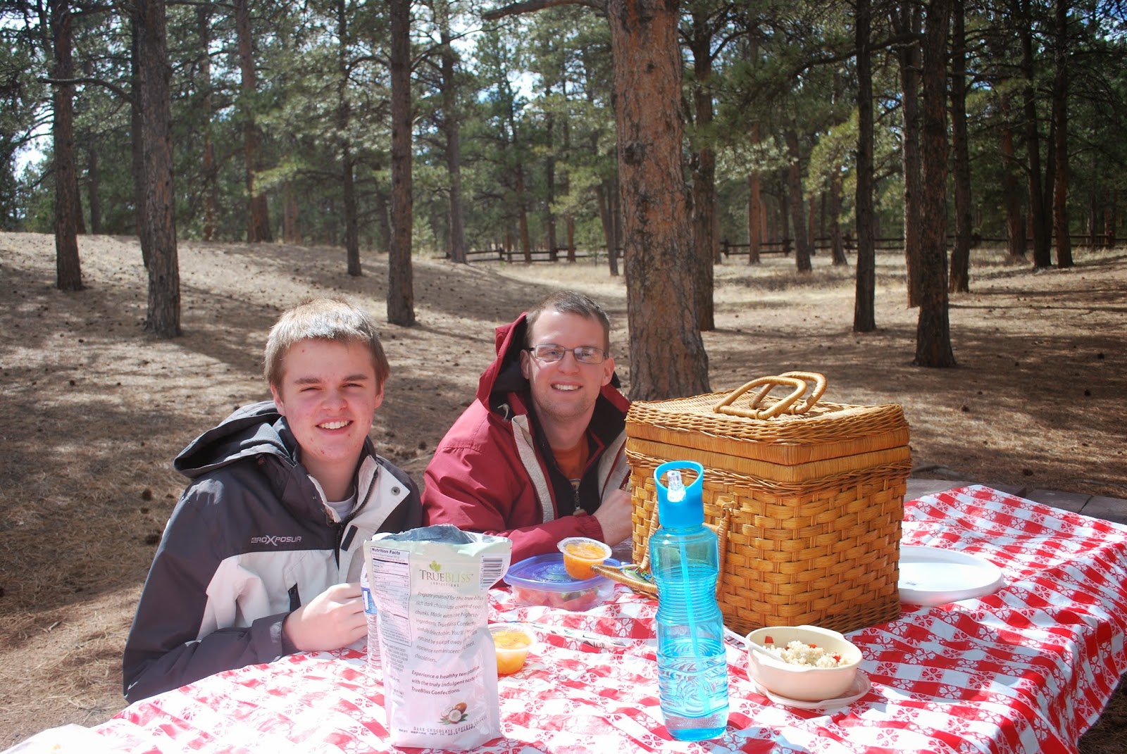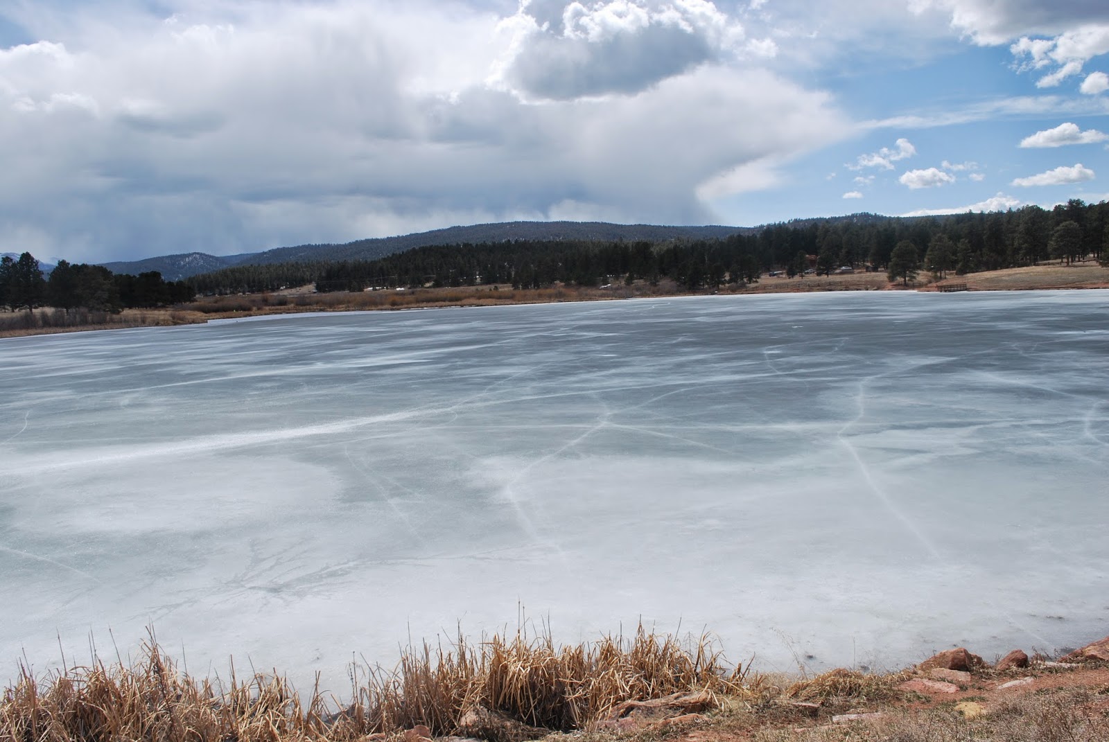 You can see where the lake is just starting to thaw up at the top. There were a couple of fishermen there while we were hiking around. We saw several more down at the river near Deckers. We'll wait til its warmer for fishing, but it was a beautiful day for a mountain picnic and a drive through some of the more scenic parts of Colorado.