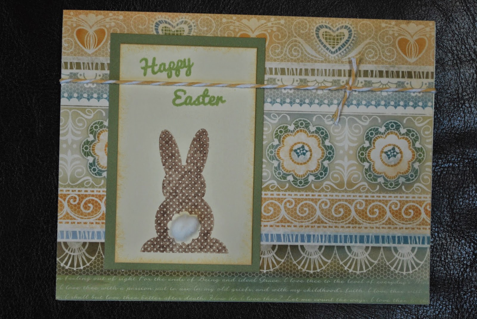 The background papers are all former samples of Close To My Heart papers that I get with each catalog and the little cotton tails are just tiny pieces of a cotton ball glued on with regular old Tombow.