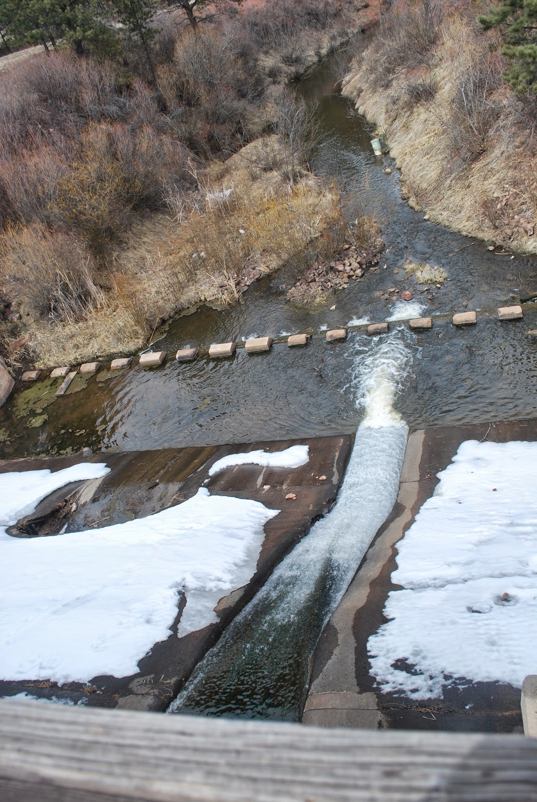 On the northwest side of the lake you can see that this lake is actually caused by the dam here, with water flowing north to the creek that eventually runs down into the South Platte River, which we drove by later that day.