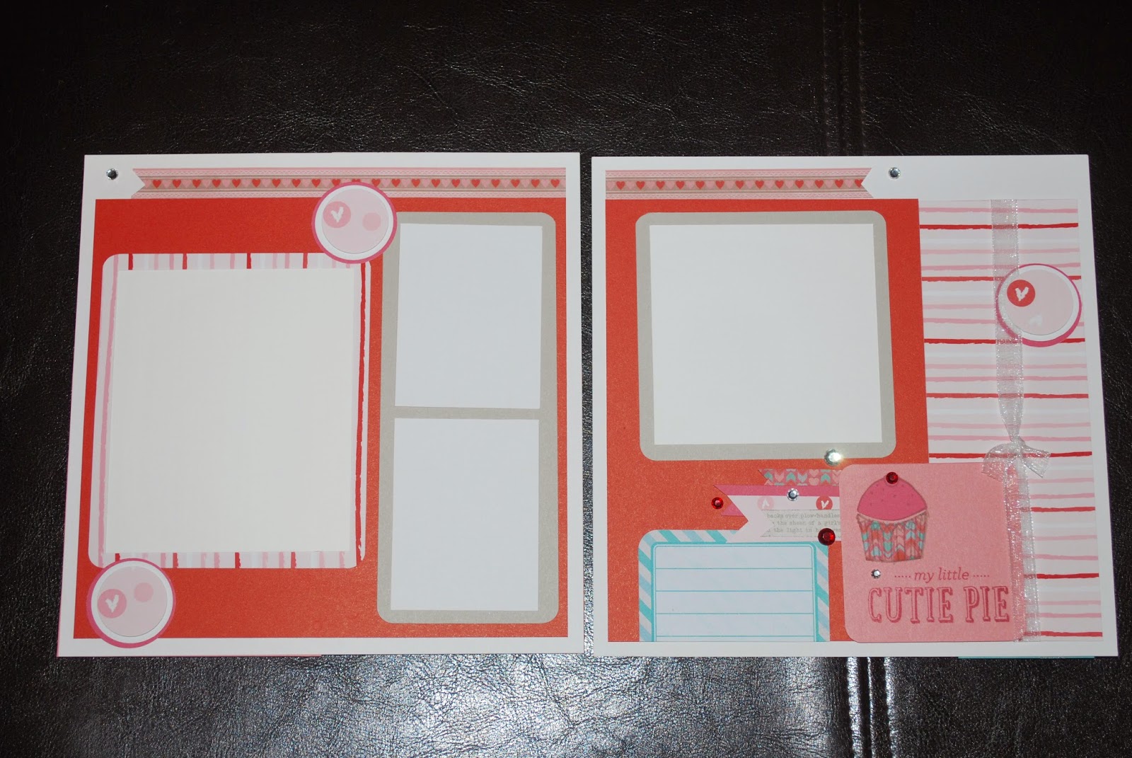 Embellshments: Offray white and pink organdy ribbon, unknown heart pins,
